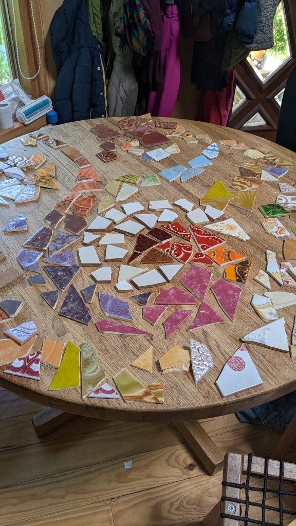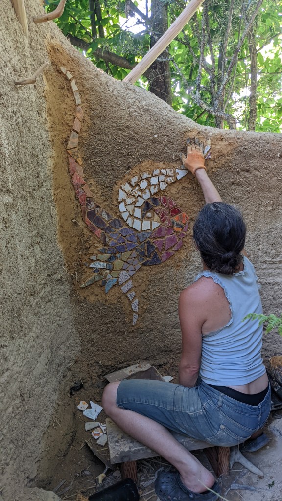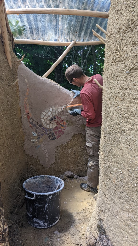 She is also planning to experiment with fresco lime painting on the outside of the shower, once it is plastered, reworking the Hebrew word for water (מים) into her design. It’s a work in progress!