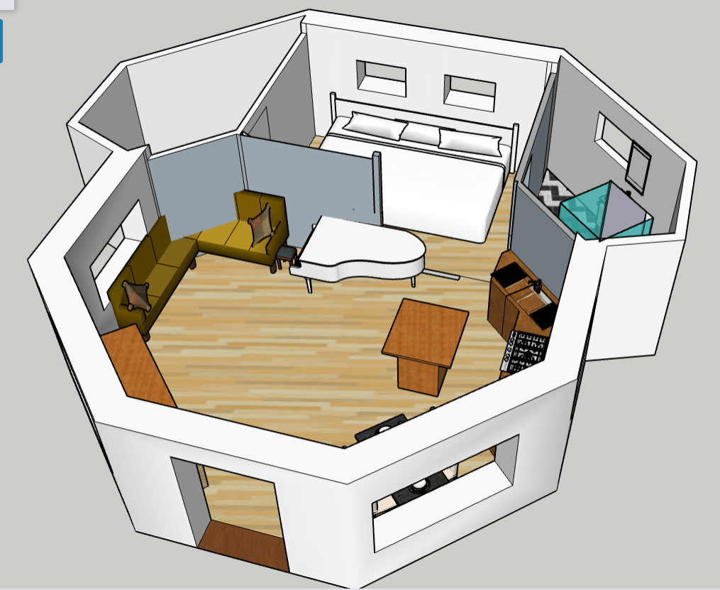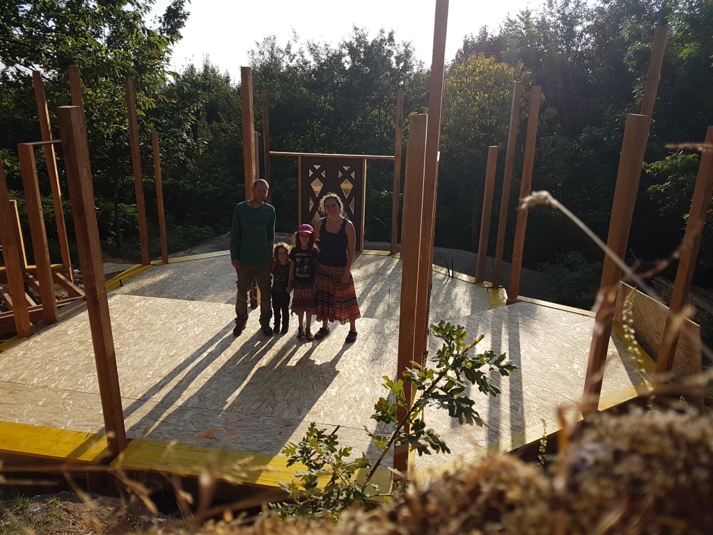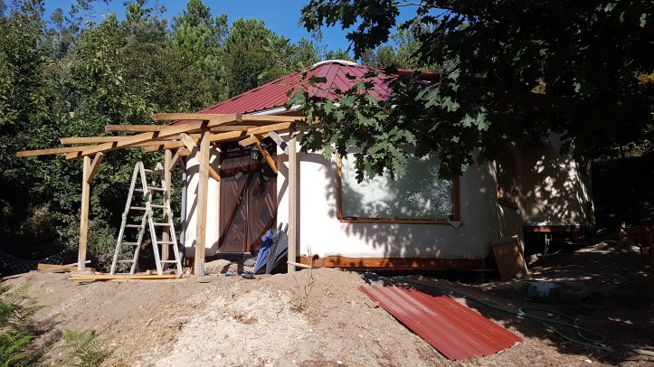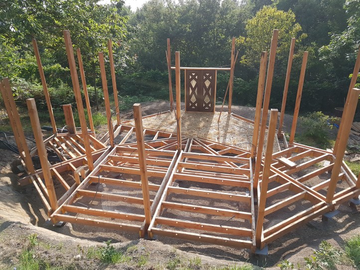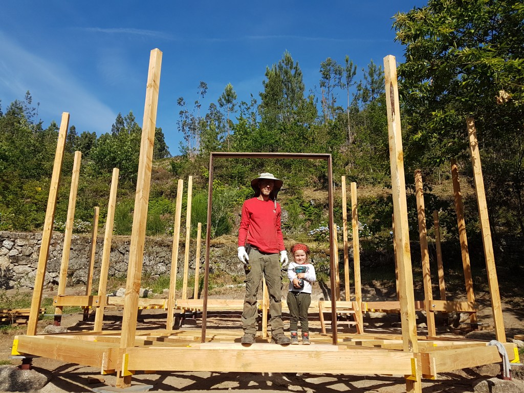 Haffy dreamt it into being, but it was designed by both of us and vetted by Tal’s architect father (Thanks, Abba Uri!). The design was inspired by a yurt and holds the structure’s final purpose as a guest house in mind, while also fulfilling its interim role: providing shelter for us (and our grand piano) while we build our dream abode.