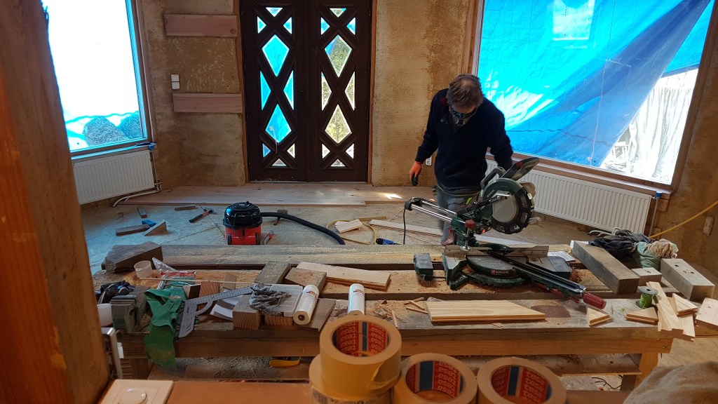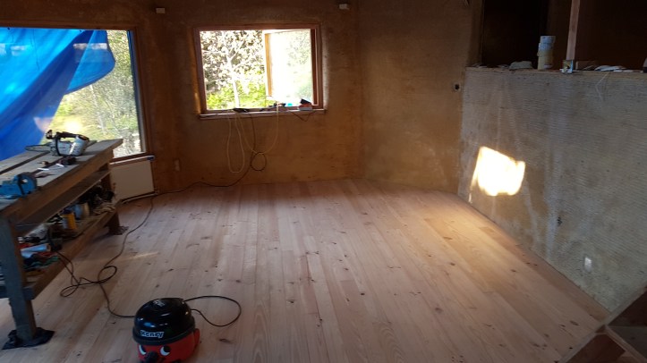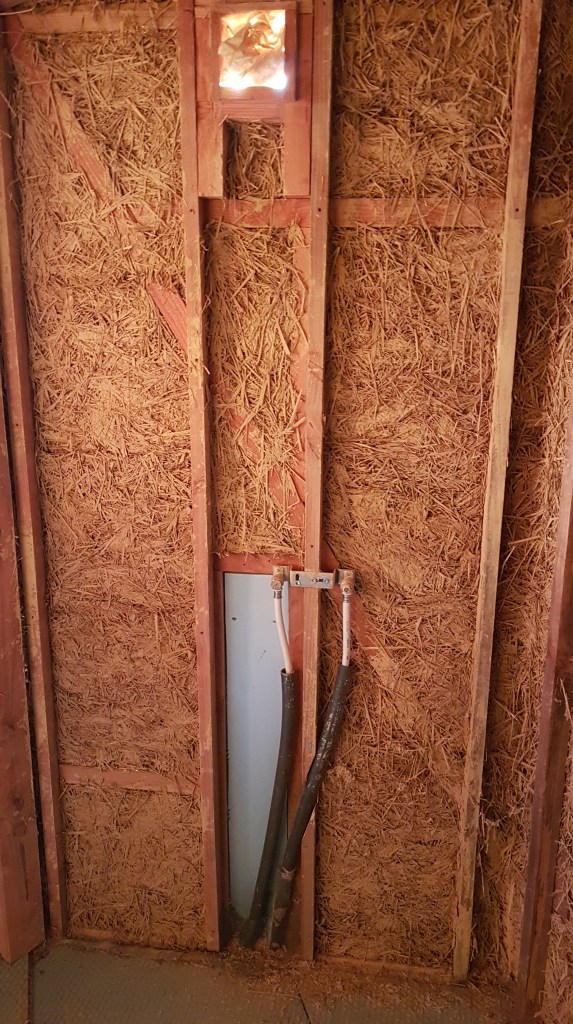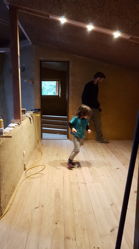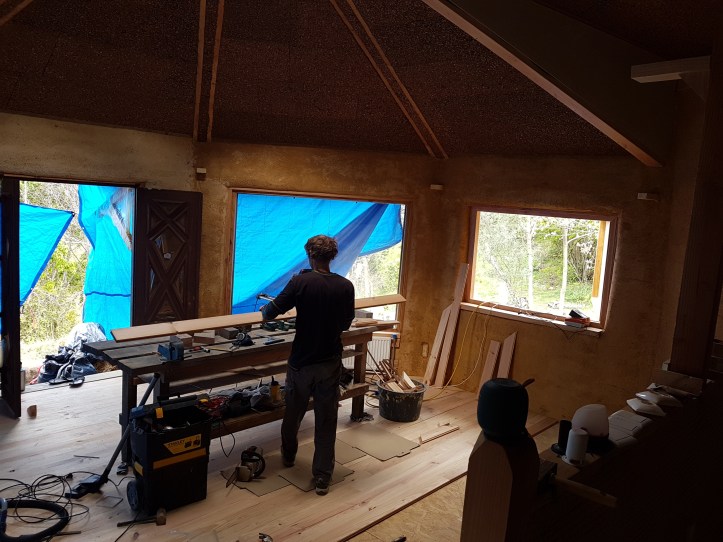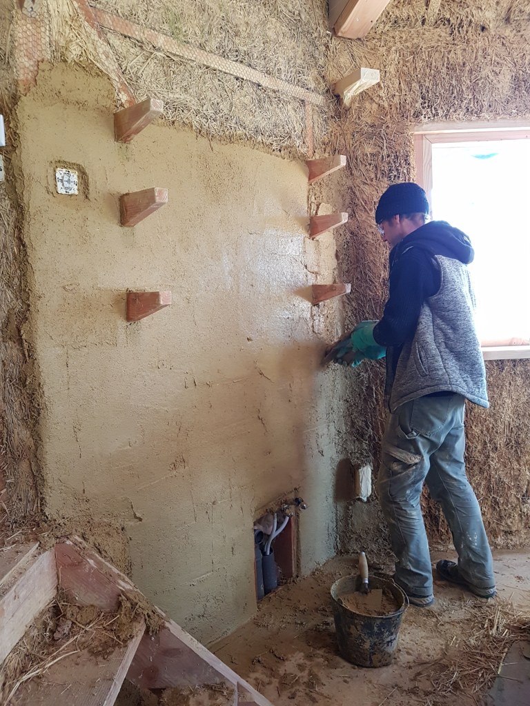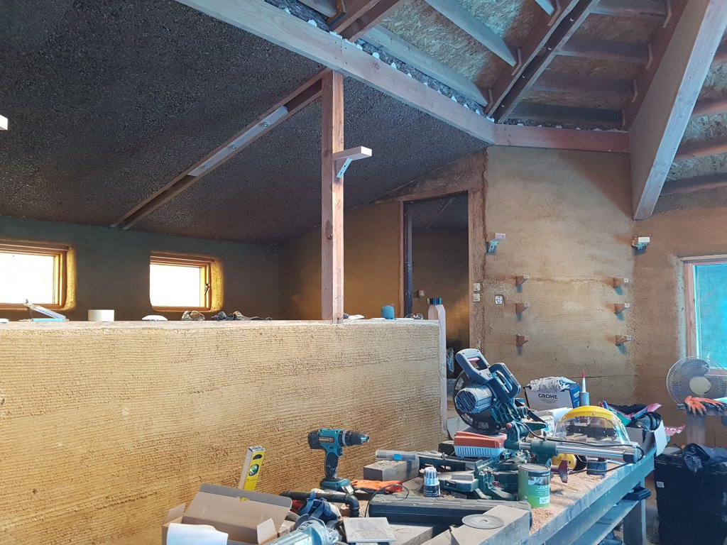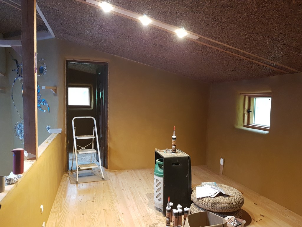 Slowly but surely it was time to get muddy. We decided to use light straw/clay for our interior walls. We did not enjoy working with the light straw/clay medium that much, since it is very time consuming and tedious. Still, the end result is nice.