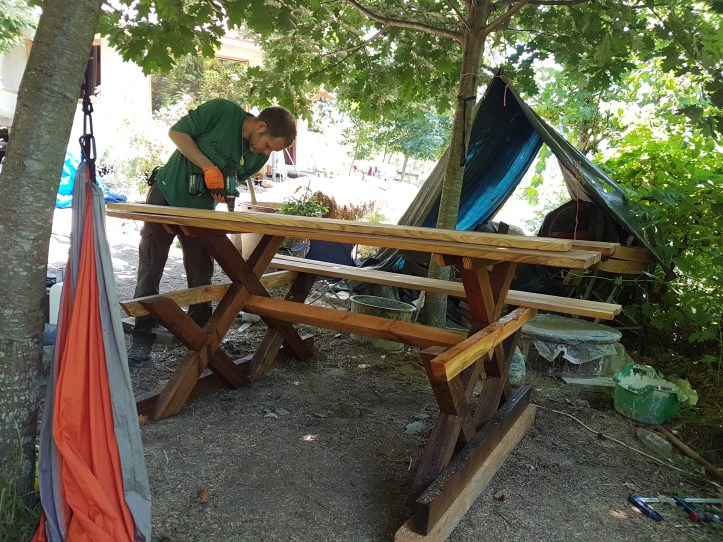 Then I made a picnic table from chesnut wood ordered from the carpenter.