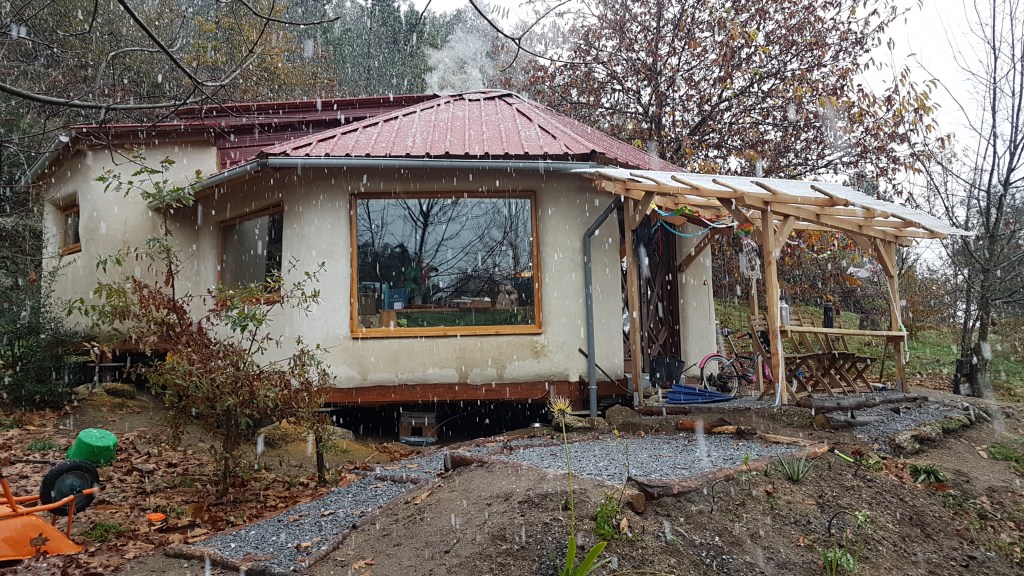 It took us nearly one year from start to finish, including a couple of months away on Tal’s cancer misadventure, as well as some weather- and supply-related delays. It was a rather solitary experience for both of us: Tal spending most of her time caring for the kids and the family’s well-being, and Haffy building the entire house on his own (except for a couple of extremely helpful visits from his parents – thank you papa Leo and mama Carla! – and occasional help from friends). But it was also a defining experience, a rite of passage that forever bonded us with this land, home, and way of life.
