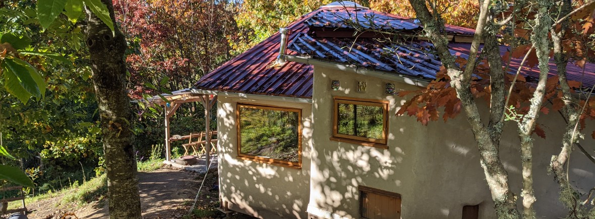 The Octagon is an eight-sided strawbale structure built on a raised wooden frame. It has been our beloved home for nearly two years.