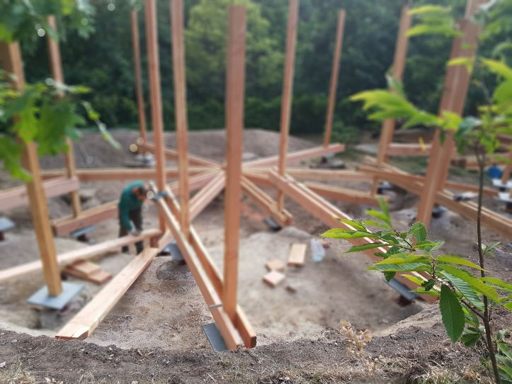 As the work progressed it became clear that the Octagon needed two levels. The subsoil at the top was too close to the surface to allow for one level, and additionally, a two-level structure seemed to blend into the landscape more seamlessly.