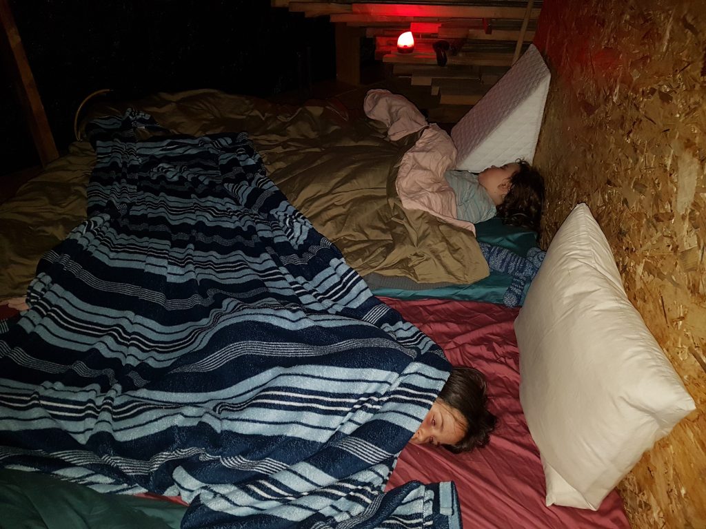 Just before flying to Israel we slept our first couple of nights in the Octagon, since we wanted to put the tent away before it started raining. I wrapped the Octagon with tarps for walls, which held amazingly for the two rainy months we were gone, and only failed once we were back to repair.