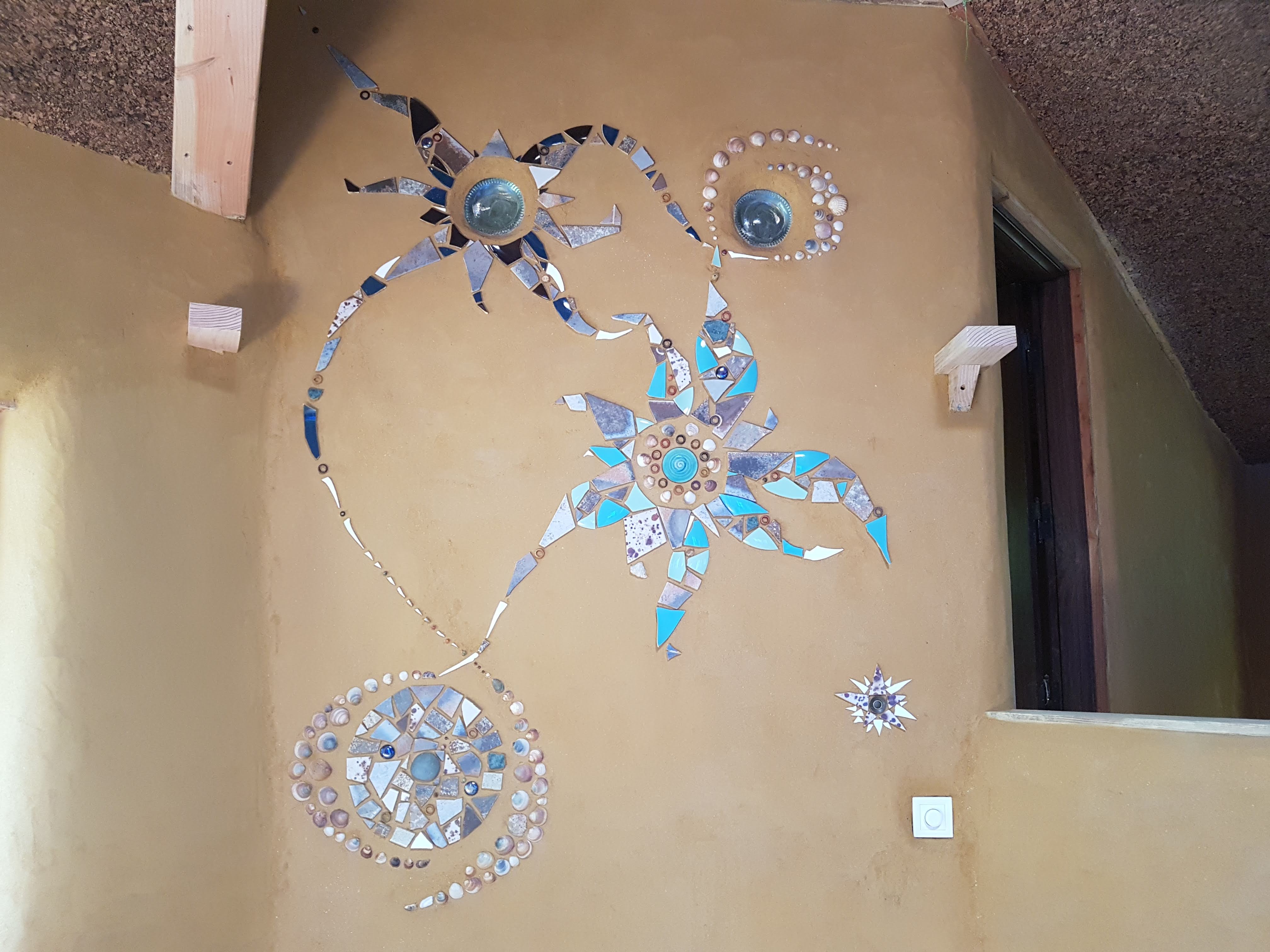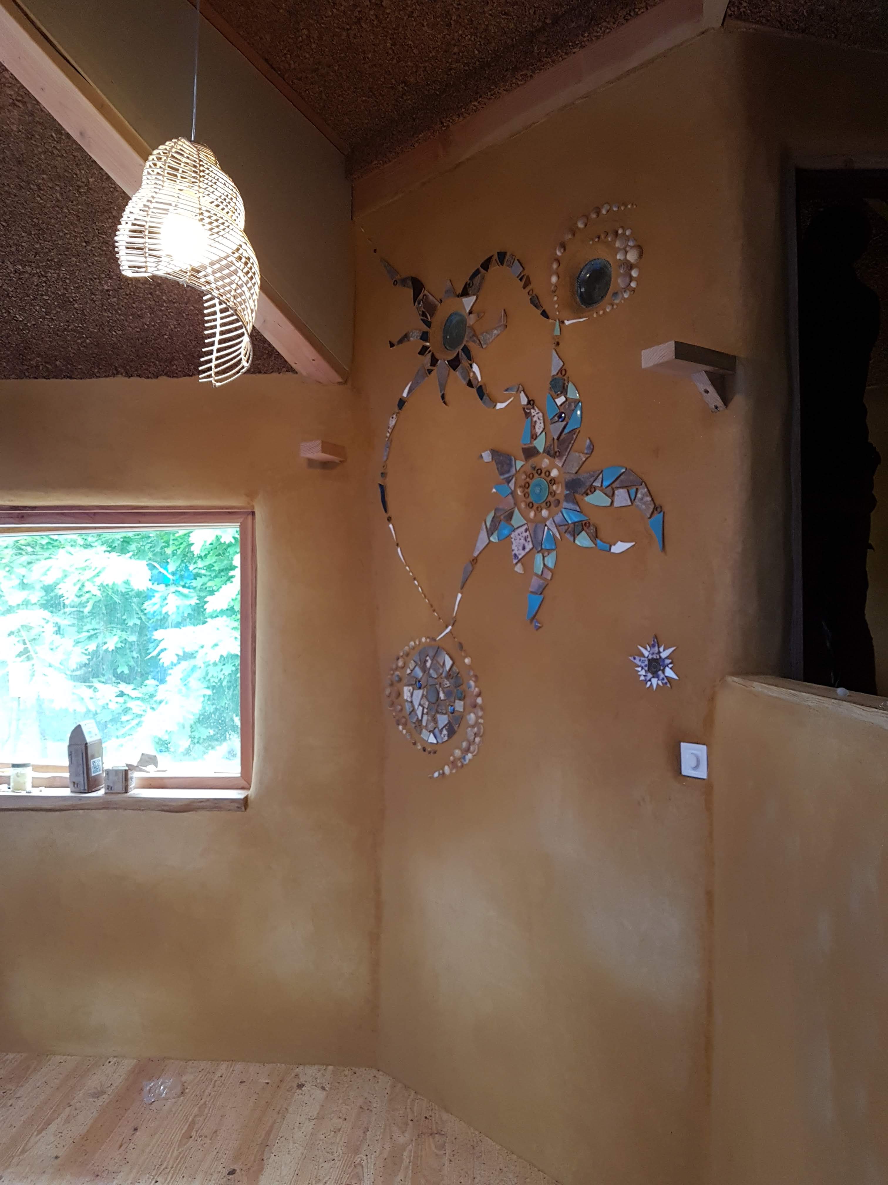 We love the golden sand color of the indoor plaster, but have found it to be too fragile. It could probably use another layer of clay alis to reduce the crumbling.
