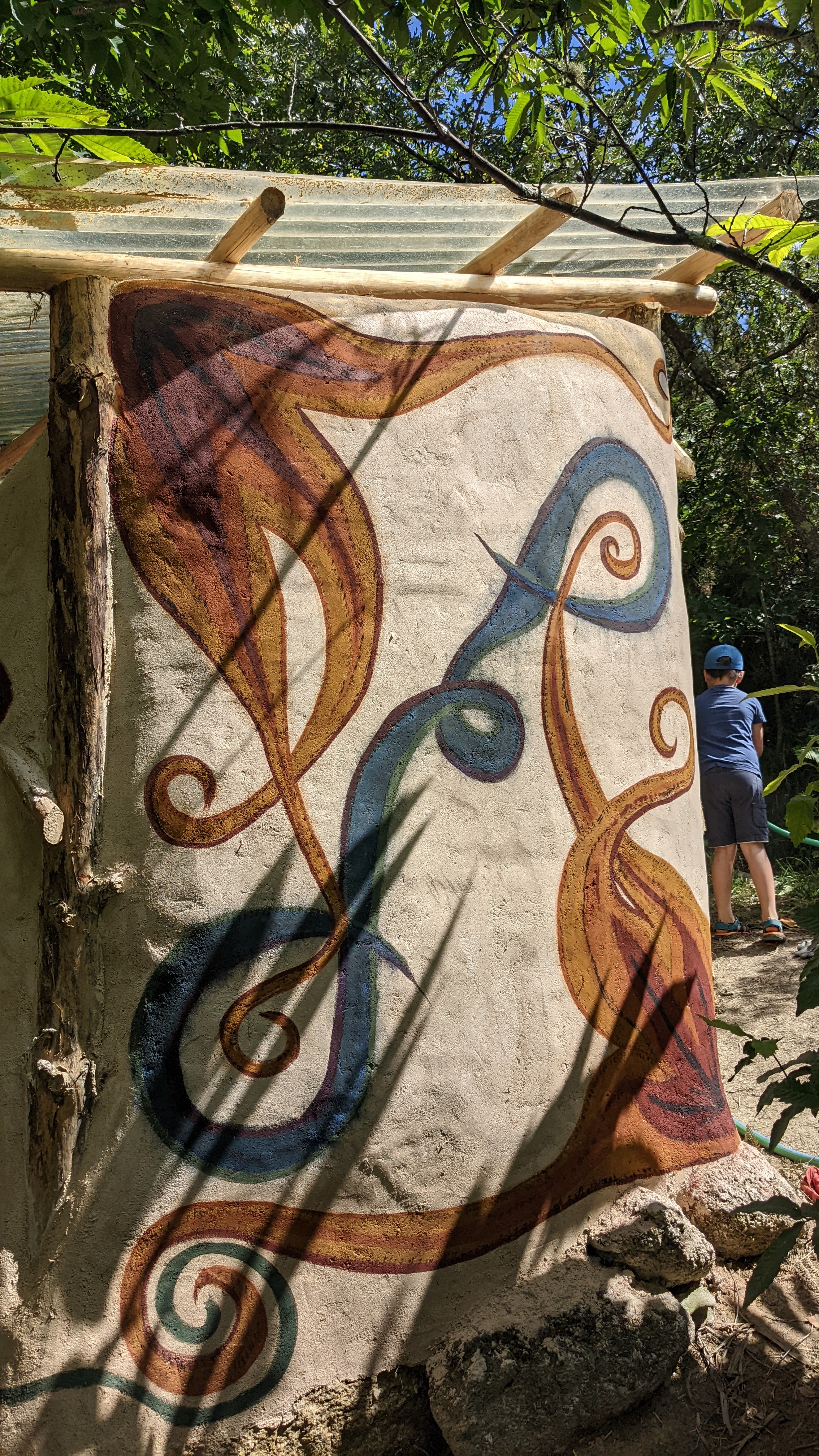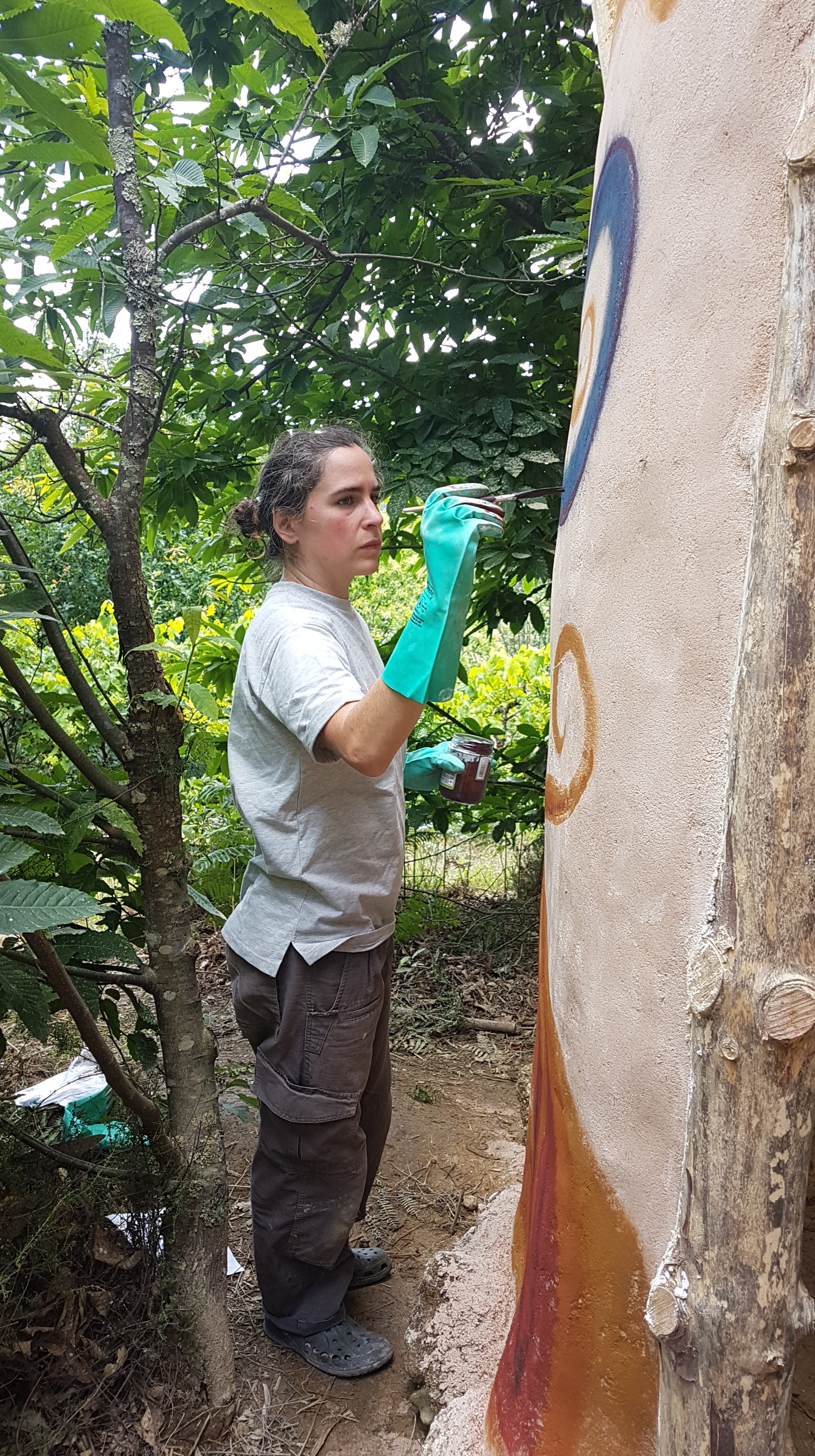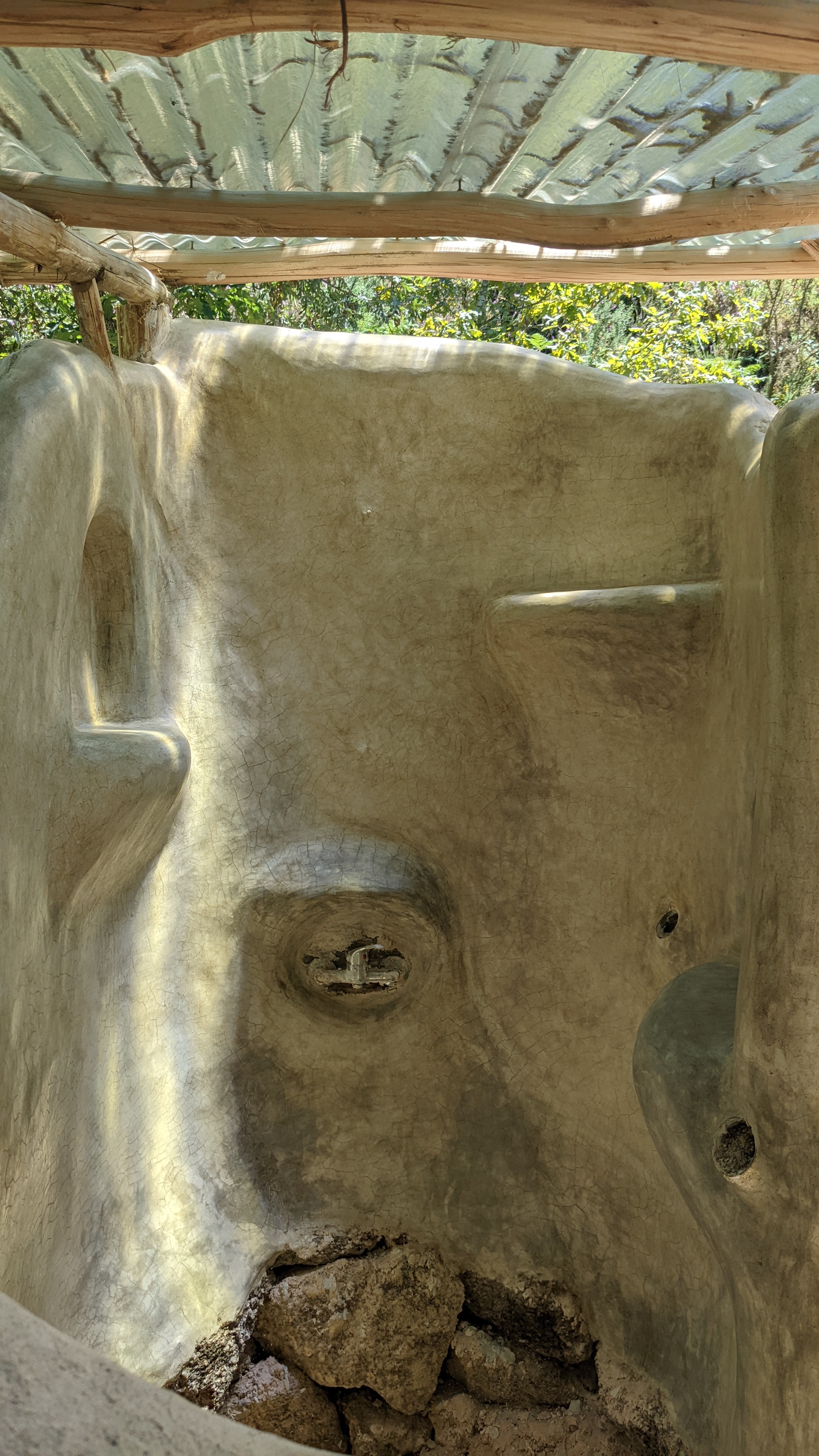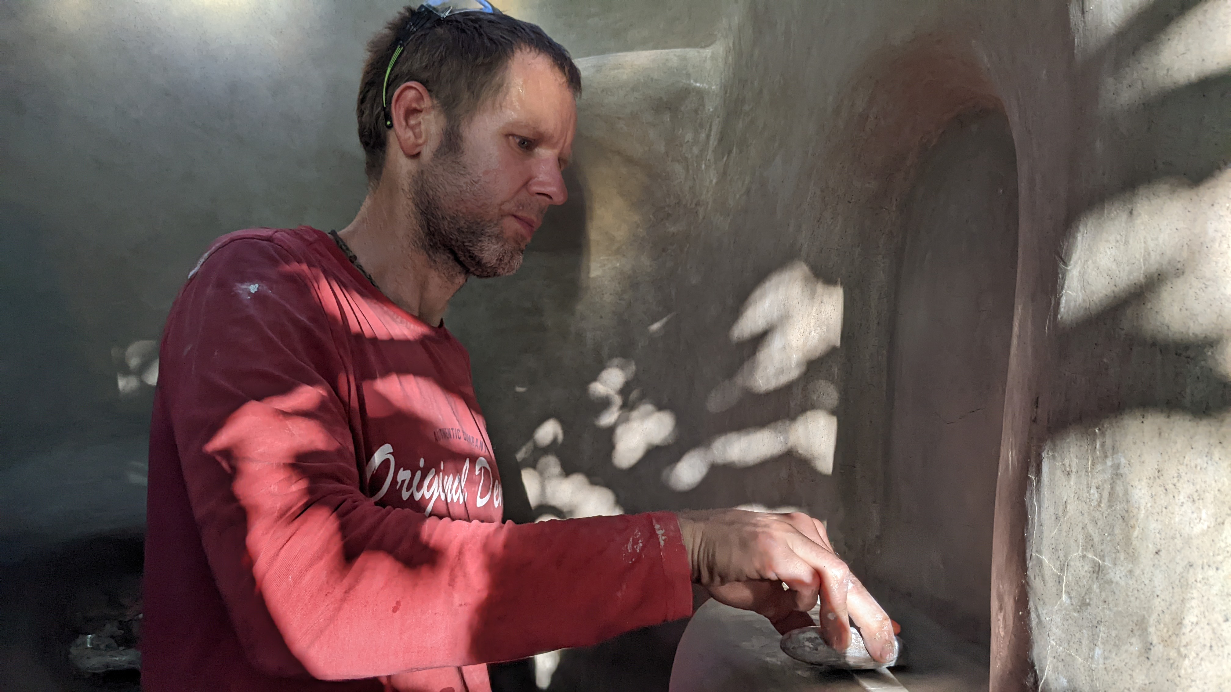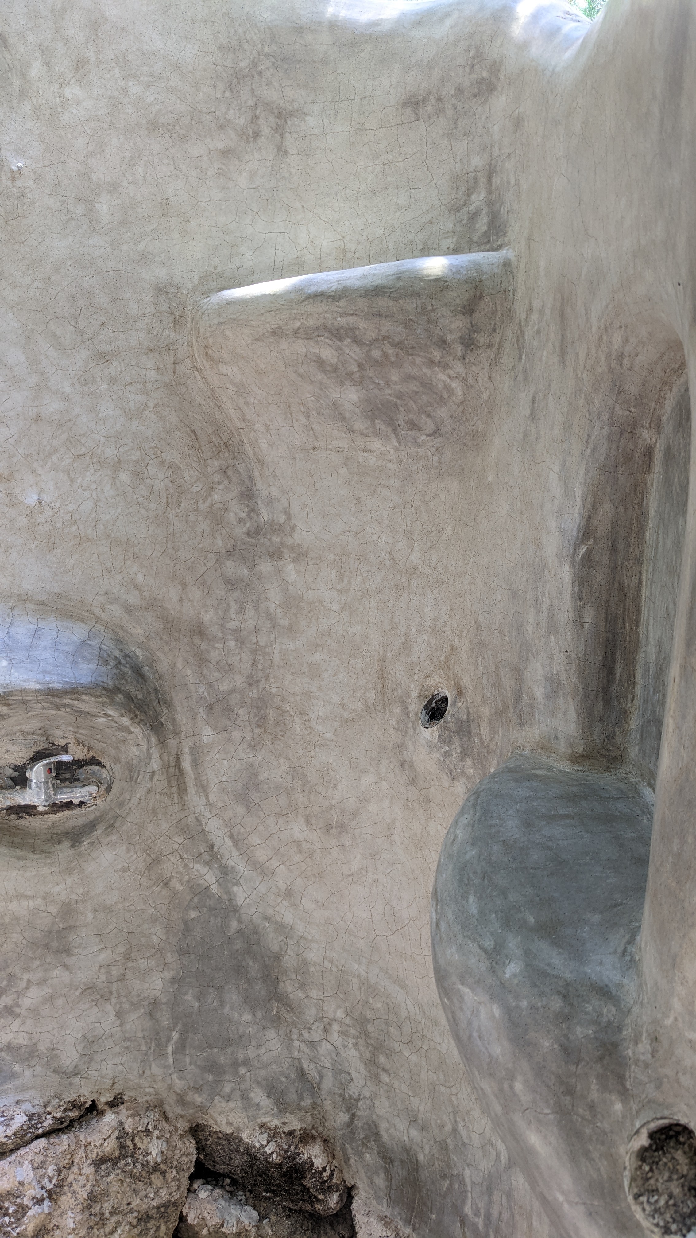 We decided to build a cob shower, in order to gain some experience with tadelakt water-resistant plaster. It is spiral-shaped, Fibonacci inspired.